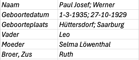 Op 21 december 1941 hebben Werner en Paul een zusje gekregen: Ruth Sara.[1] .