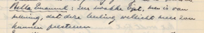 'Bella Emanuel: zeer zwakke lijst, men is van mening dat deze leerling wellicht meer zou kunnen presteren.' [4]