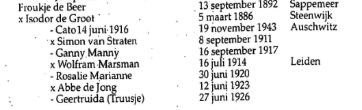 Wat weet ik wel? Truusje komt samen met haar moeder op 9 november 1943 in de strafbarak van Westerbork terecht. Dat betekent dat zij hoogstwaarschijnlijk zijn opgepakt uit de onderduik. Mogelijk was dat in Nijmegen, waar moeder Froukje de Beer familie had. Tien dagen na hun aankomst gaan ze op transport naar Auschwitz, waar ze onmiddellijk na aankomst vergast zijn. Iets anders dan deze kille gegevens kan ik over Truusje niet vinden. Het enige persoonlijke is een foto van haar: