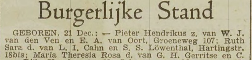 Op 21 december 1941 hebben Werner en Paul een zusje gekregen: Ruth Sara.[1] .